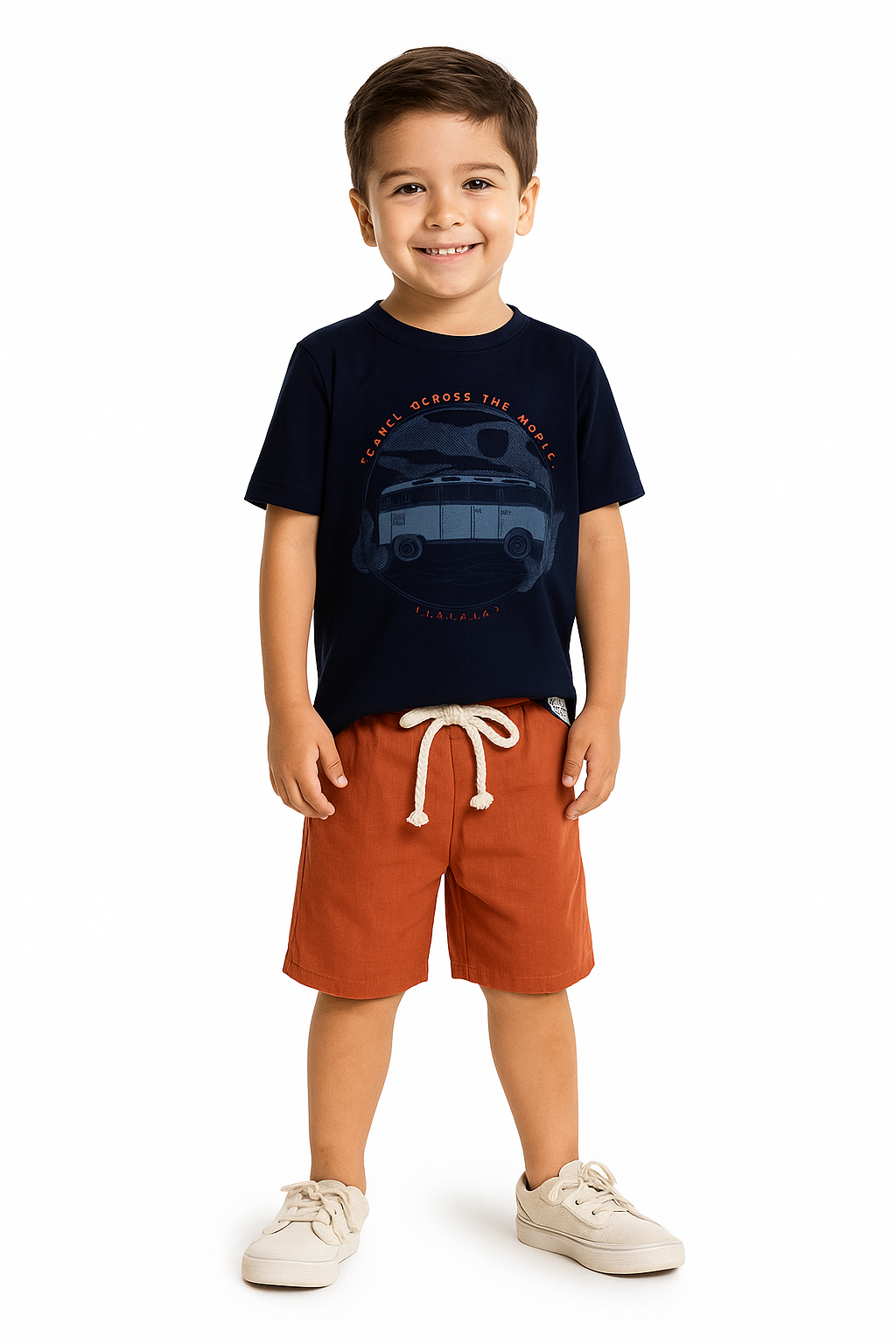 O Conjunto Infantil com Camiseta e Bermuda com Linho Menino é perfeito para momentos de diversão e passeios cheios de estilo. A bermuda traz um toque sofisticado graças ao linho, enquanto a camiseta em meia malha macia completa o visual com leveza e estampa exclusiva. Um look versátil que une conforto e modernidade para o dia a dia dos pequenos.