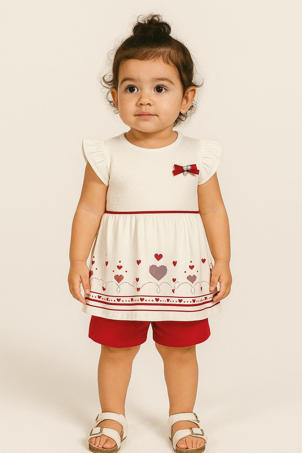 Delicado e confortável, o CONJUNTO INFANTIL MENINA COM LAÇO EM MALHA TEXTURIZADA é ideal para os momentos de lazer ou ocasiões especiais. A blusa possui corte soltinho, mangas curtas e gola redonda, proporcionando liberdade de movimento e um caimento leve. Seu charme especial fica por conta do aplique de laço com pérola, que traz um toque extra de delicadeza.