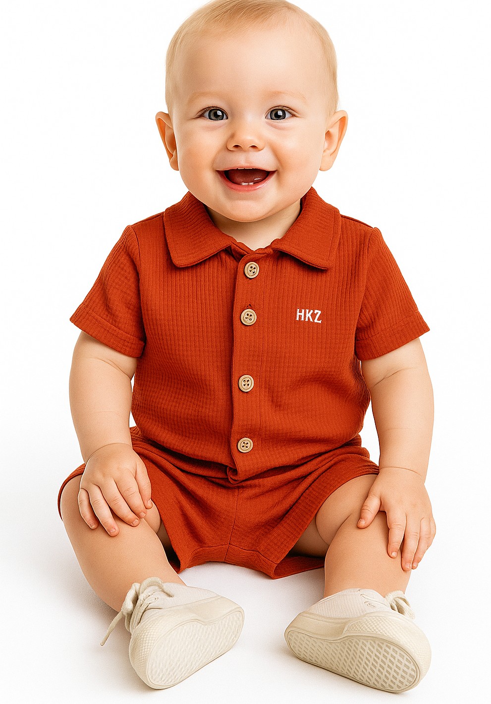 O CONJUNTO INFANTIL MENINO COM CAMISA DE MANGA CURTA E BERMUDA traz um visual moderno e confortável para os pequenos que adoram estar bem-vestidos em qualquer ocasião. A camisa, feita em malha com elastano e textura que remete ao crochê, tem caimento leve e toque suave, com gola clássica e fechamento por botões frontais que facilitam o vestir.