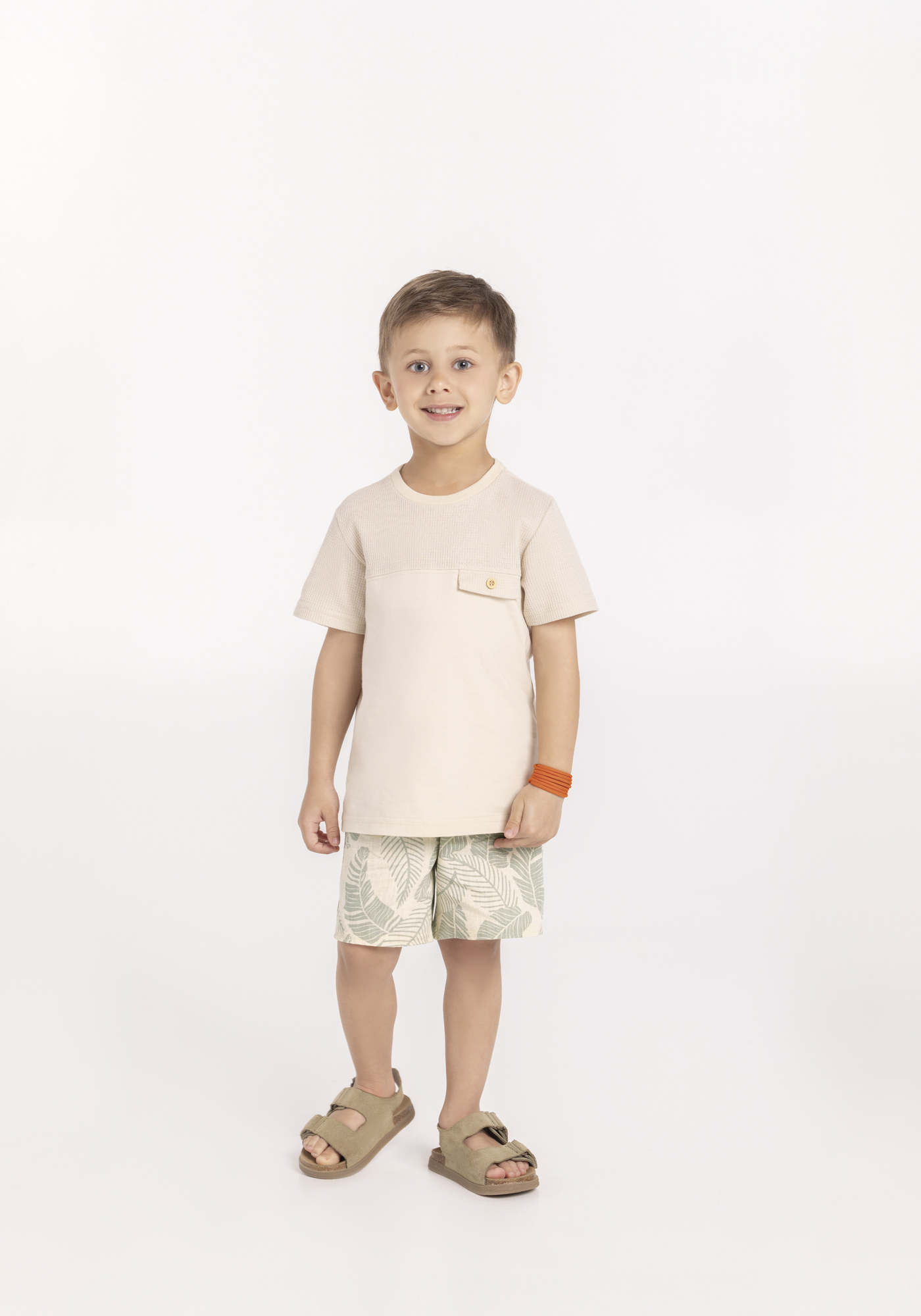 Com visual fresquinho e estiloso, o Conjunto Infantil Menino com Camiseta e Bermuda com Linho é perfeito para acompanhar os pequenos em passeios, momentos em família e dias cheios de diversão. A camiseta traz textura diferenciada, enquanto a bermuda com linho adiciona um toque moderno e confortável ao look.