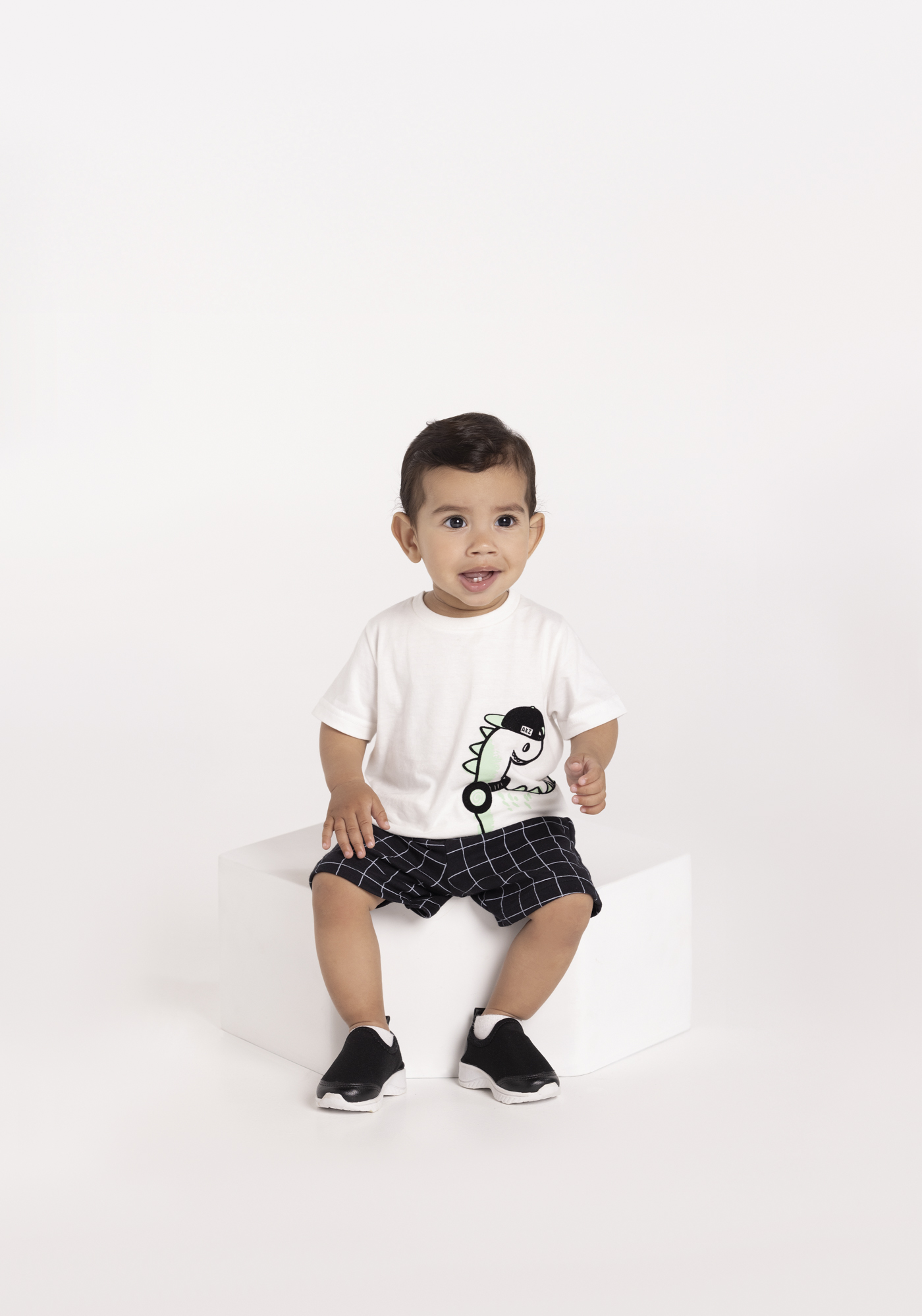 O CONJUNTO INFANTIL MENINO COM CAMISETA E BERMUDA GRID é a escolha perfeita para um visual moderno e divertido. A camiseta confeccionada em meia malha penteada leve garante conforto e frescor, enquanto a estampa localizada com dino cheio de estilo dá o toque lúdico que as crianças adoram. Já a bermuda em moletom quadriculado proporciona praticidade e liberdade de movimento, com cós elástico que se ajusta com facilidade ao corpo. Um conjunto versátil que une estilo e conforto para acompanhar os pequenos em todas as aventuras do dia a dia.