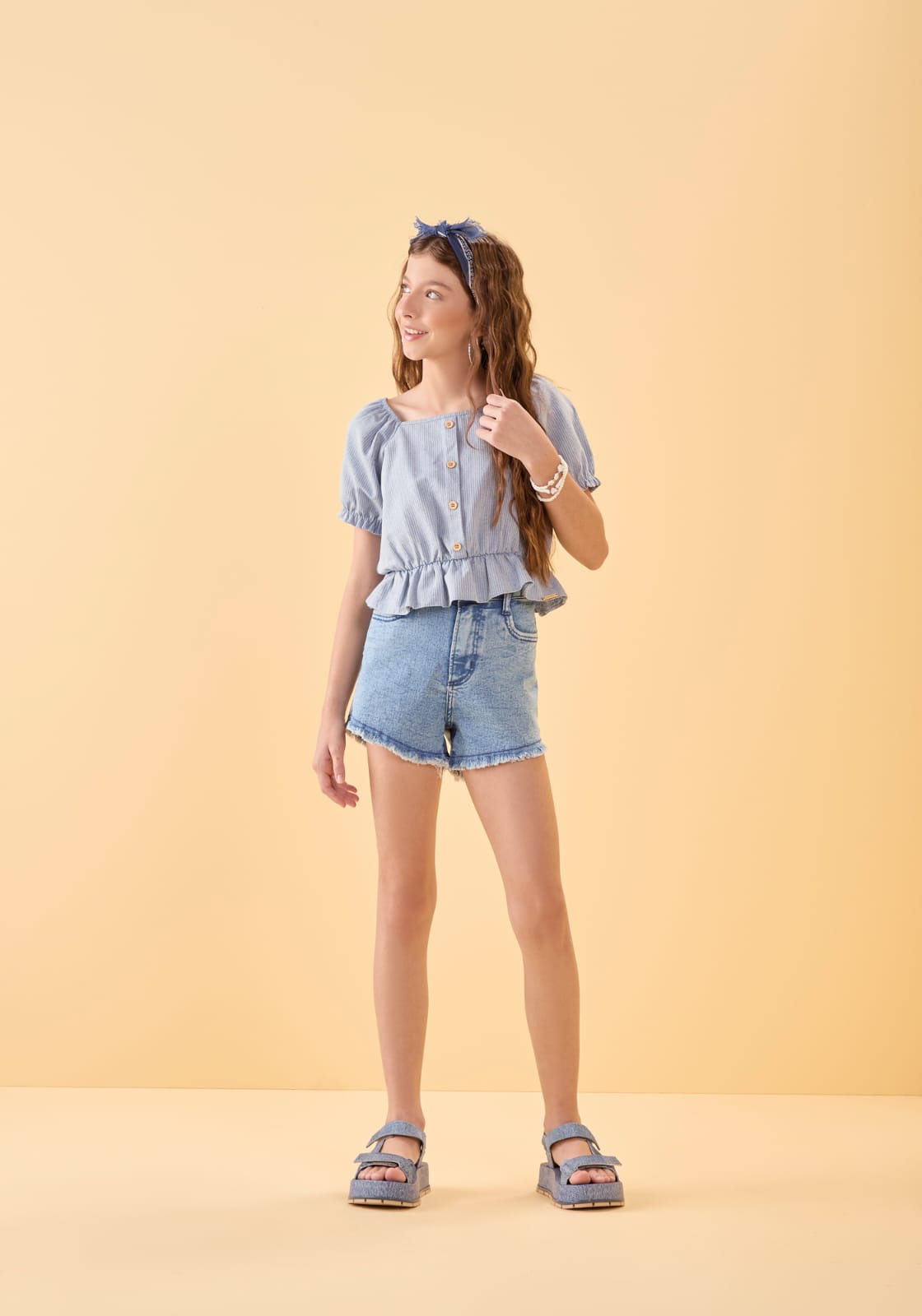 O Shorts Jeans Marmorizado é perfeito para quem busca estilo, conforto e caimento impecável. Confeccionado em jeans com 40% de elasticidade, oferece ajuste ideal ao corpo sem perder a mobilidade. O design conta com cintura alta, lavagem marmorizada e barra desfiada, que trazem um toque moderno e despojado. Ideal para compor looks casuais e urbanos com muito estilo.