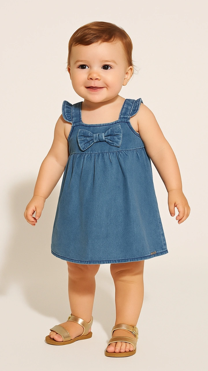 O Vestido Infantil em Light Denim é leve, delicado e cheio de charme, perfeito para ocasiões especiais.